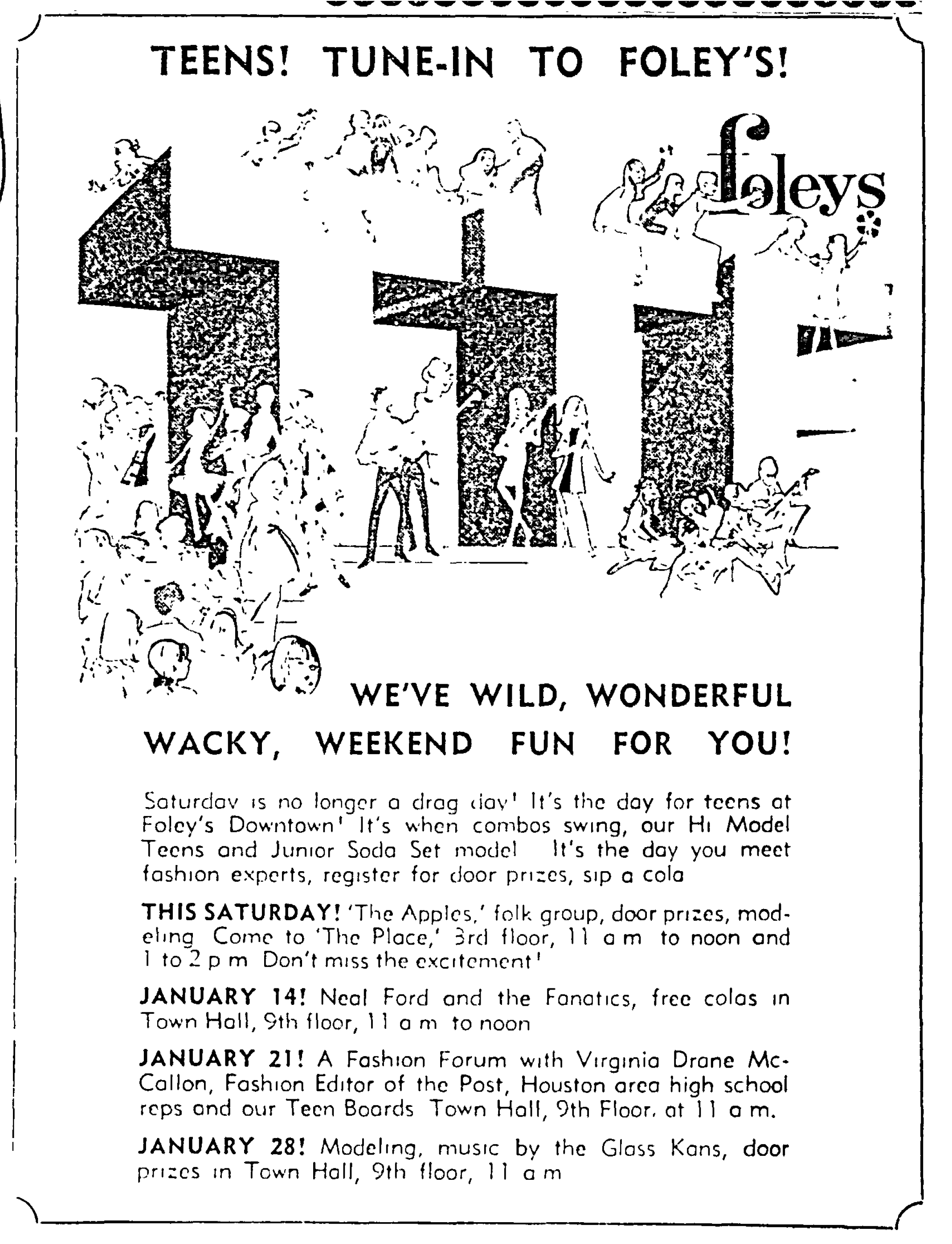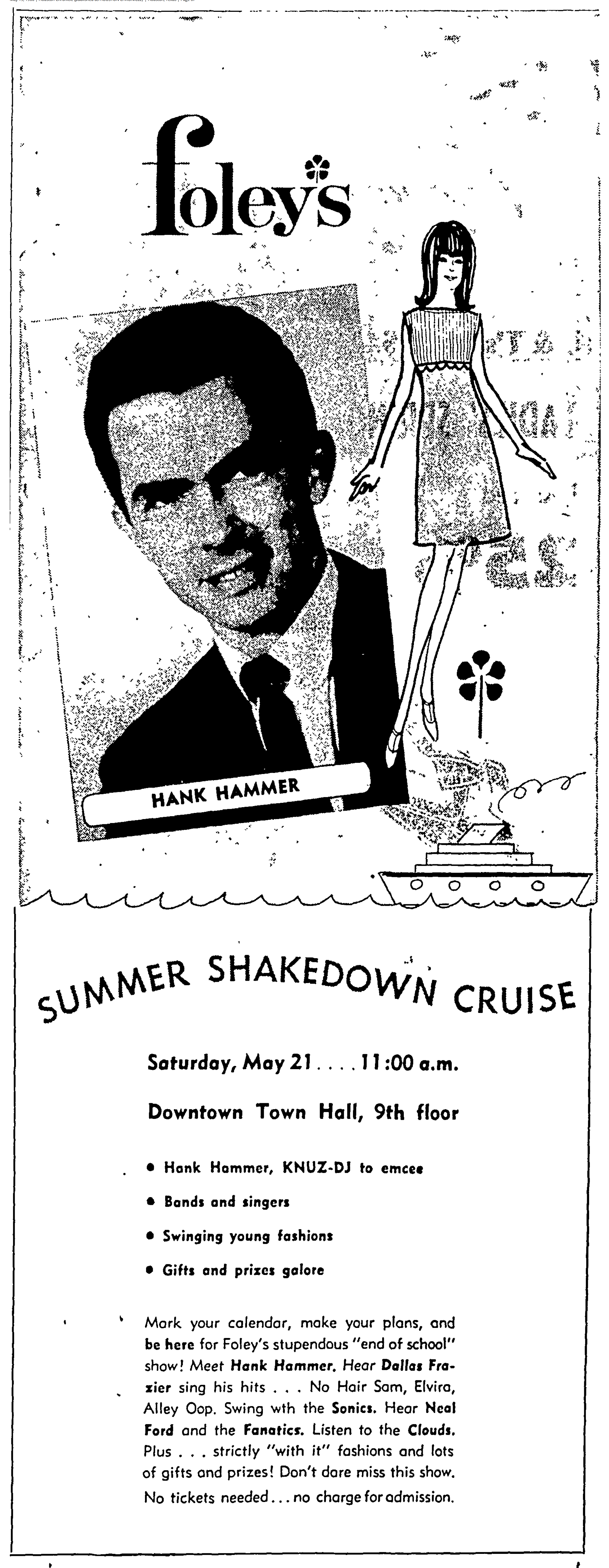 Daquiris with The Magic Ring, The Daiquiris, The Loud Crowd, The Midnighters, The A-440's, and Soul Unlimited Conroe Courier: Preview 7/9/67 Article 7/12/67: Part 1 Part 2 Full text of article by Stan Crawford |