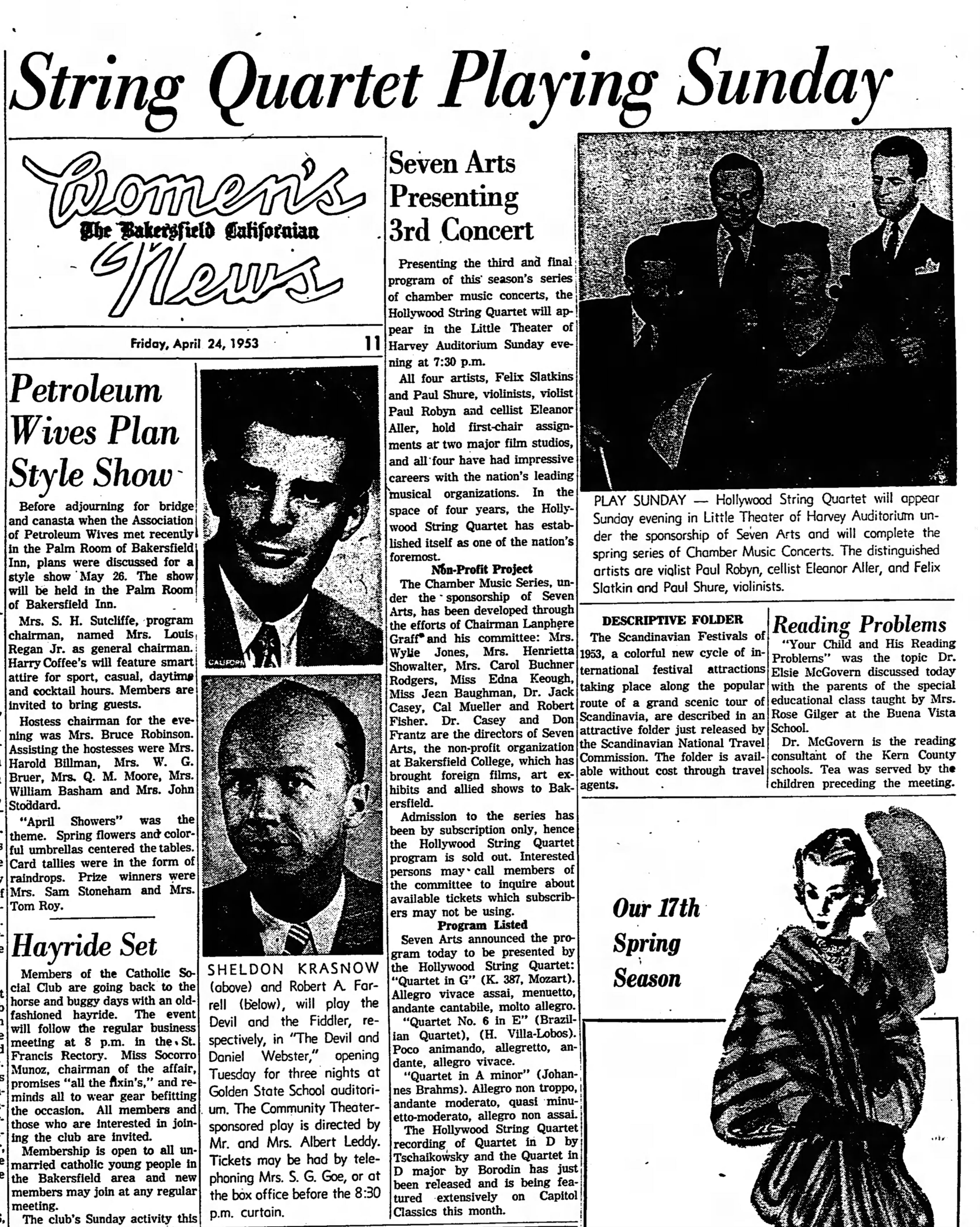 "The advantage of being a studio musician was that you were under contract, and like a symphony orchestra musician, you worked approximately twenty-two to twenty-four hours a week, and had a great deal of free time to pursue other interests. Hence, my parents were able to not only have a decent living by working in the studios, but it provided them with a means to establish one of the great quartets of our time," explains Leonard Slatkin.