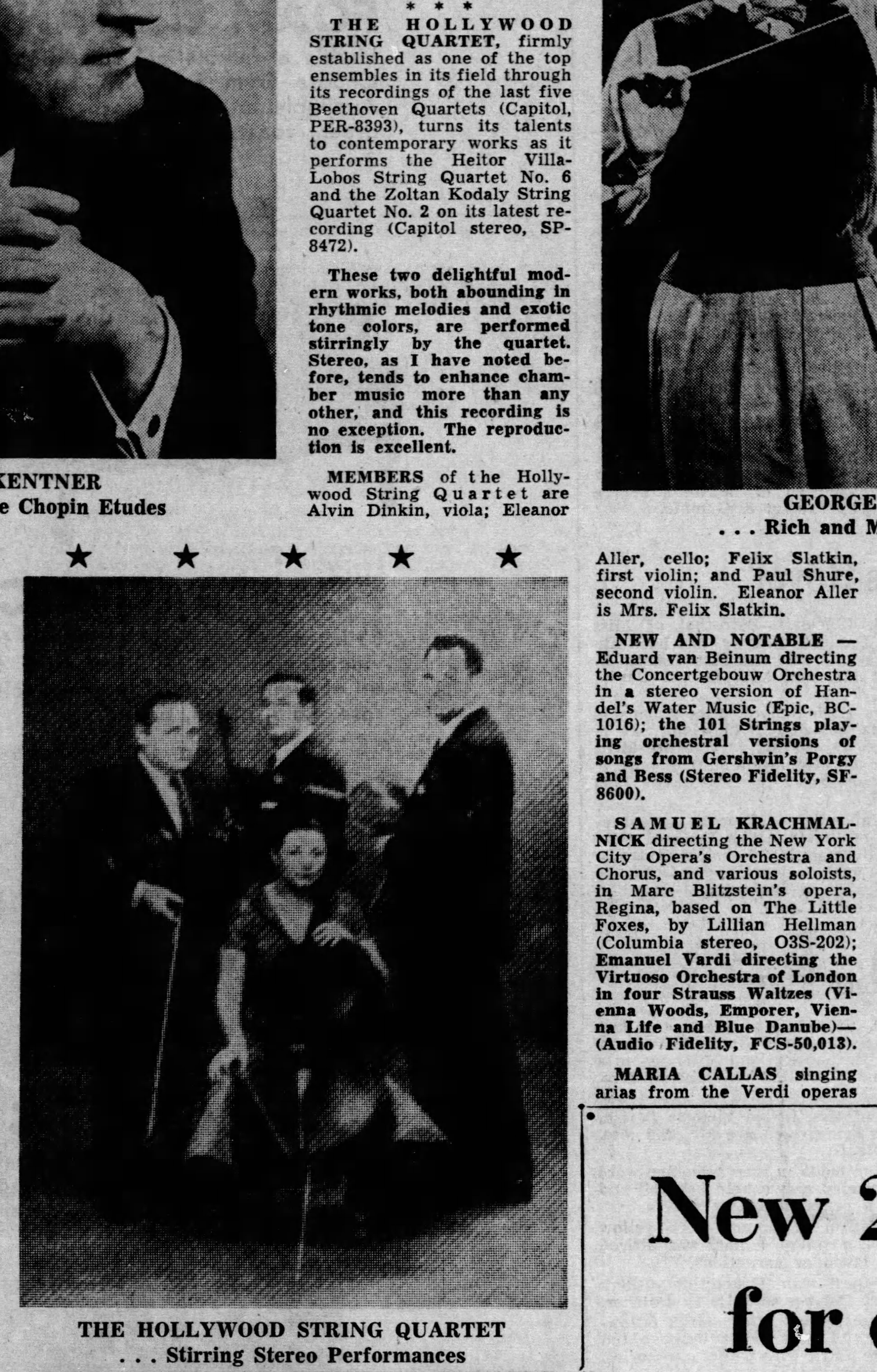 C. Shure (violin), Alvin Dinkin (viola), and Eleanor Slatkin (cello).